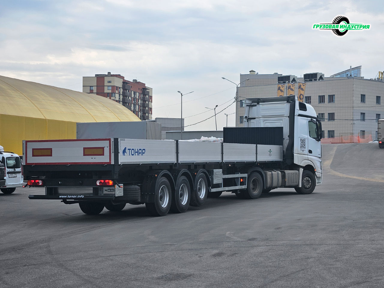 Отгрузка сцепки тягач Mercedes 4x2 и полуприцепа бортовая платформа Тонар B3-13K в Москву 23 августа 2024г.