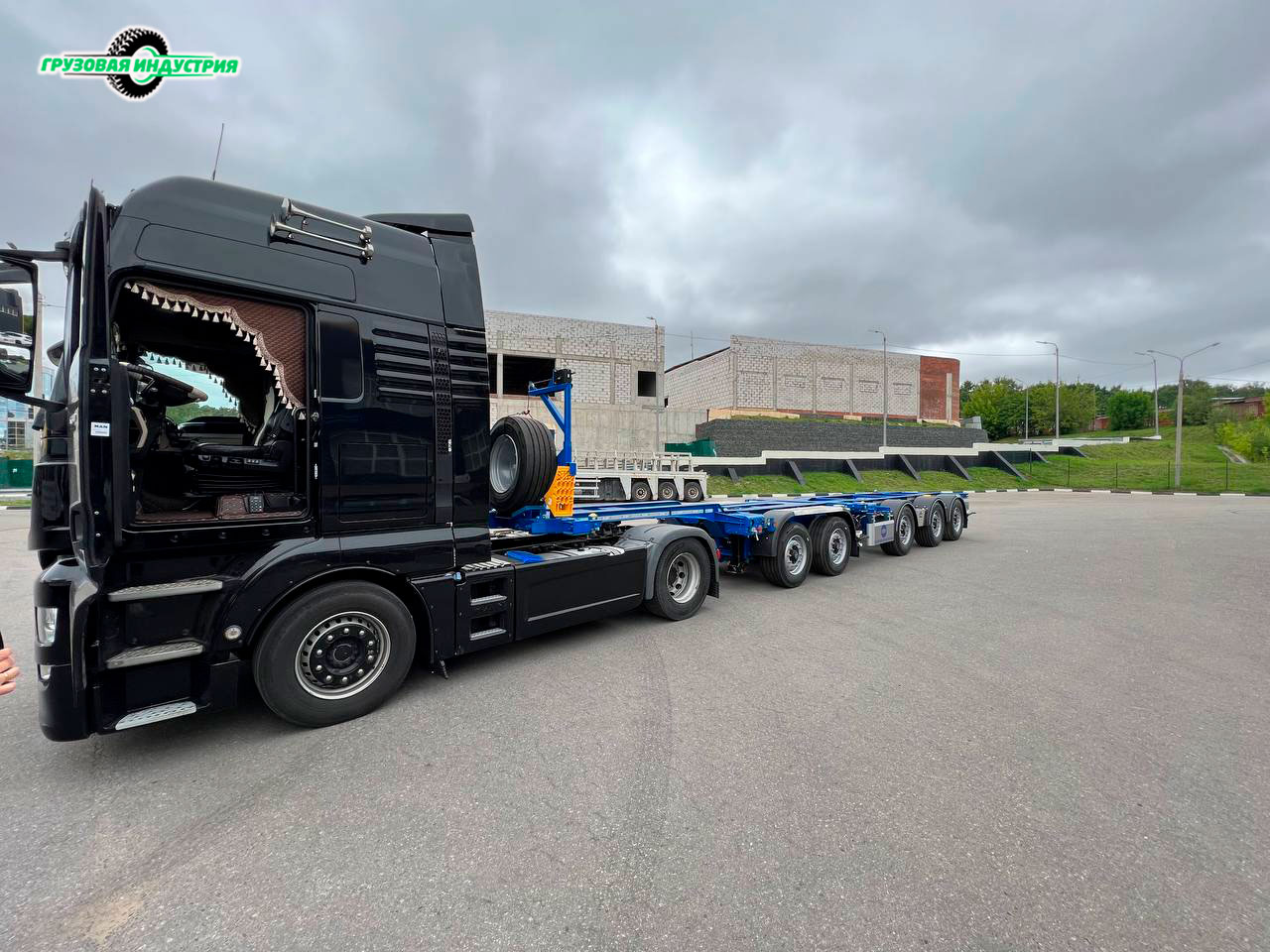 Отгрузка универсального полуприцепа тандемного контейнеровоза Meusburger Новтрак SW-570 в Москву
